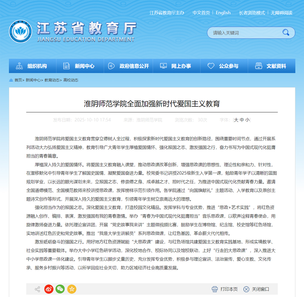 【江苏教育】淮阴师范学院全面加强新时代爱国主义教育