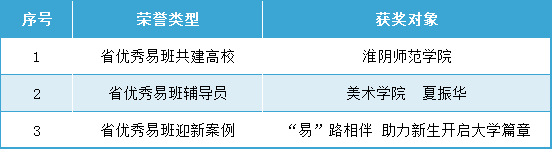 淮师新闻网12月31日电(记者 汪泽)近日,2025年度江苏高校易班共建工作评优结果公布,淮阴师范学院获评江苏省“优秀易班共建高校”,美术学院夏振华获评“优秀易班辅导员”,《“易”路相伴 助力新生开启大学篇章》获评“优秀易班迎新案例”。