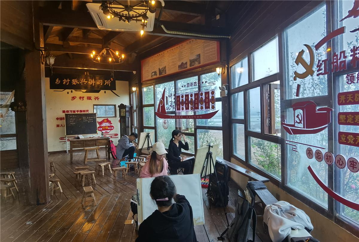 图为学生写生场景照