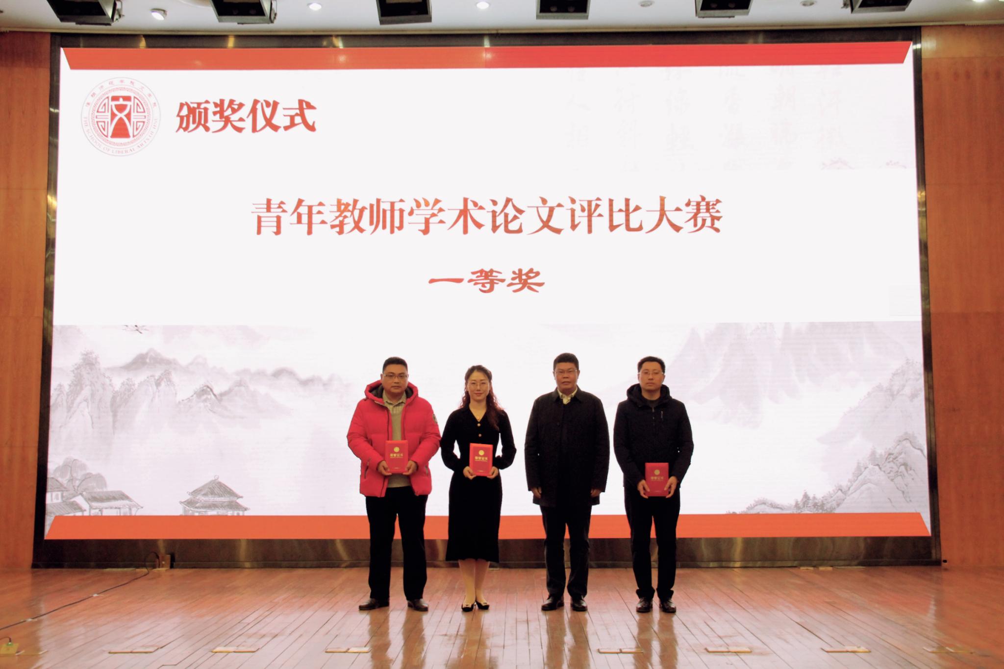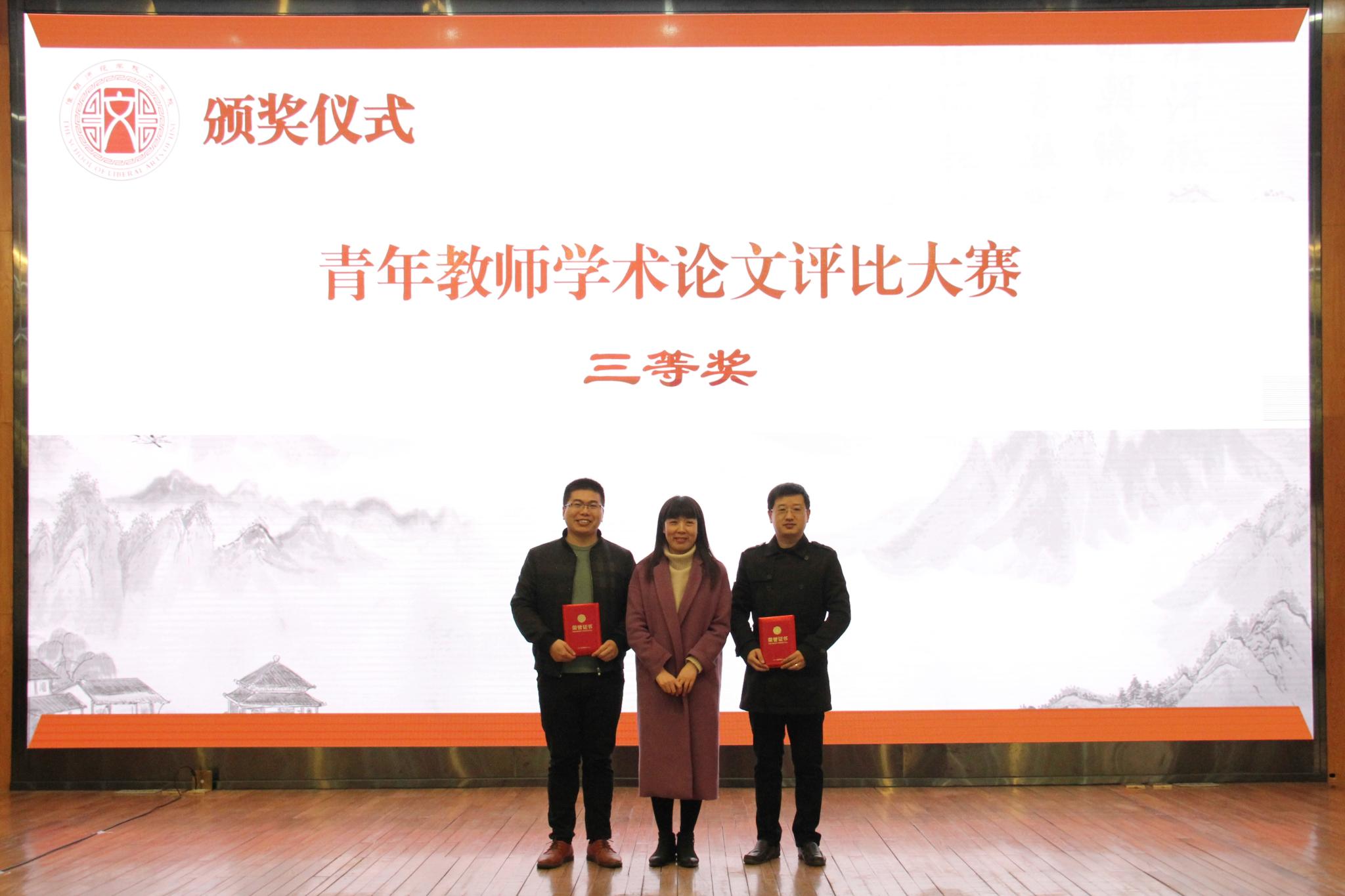 图为与会领导为青年教师学术论文三等奖获得者颁奖。 记者 王禹潮 摄