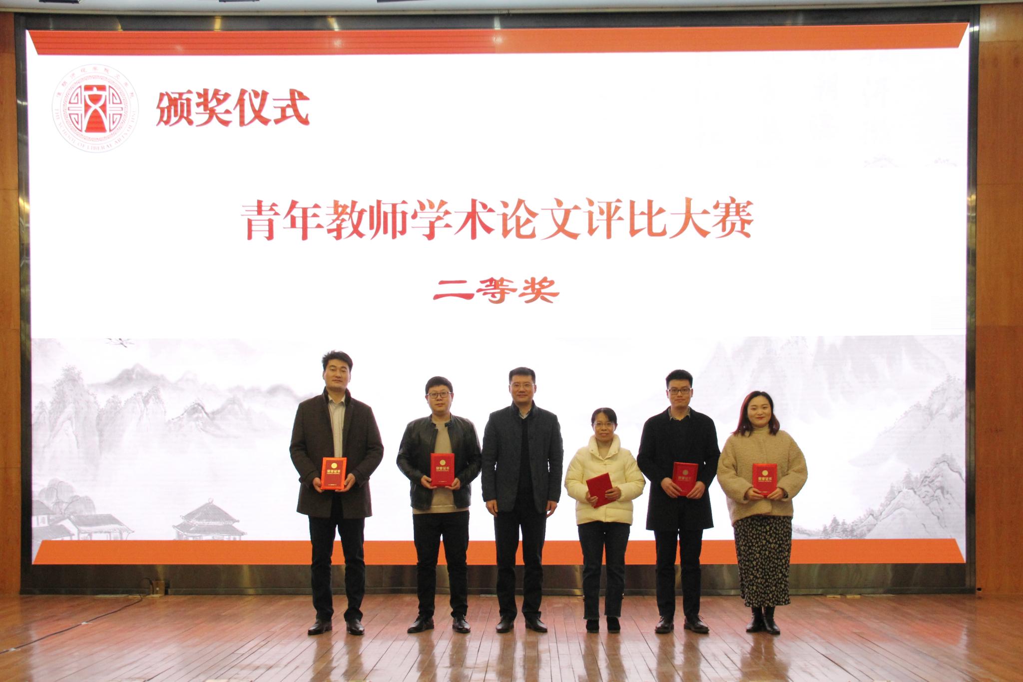 图为与会领导为青年教师学术论文二等奖获得者颁奖。 记者 王禹潮 摄