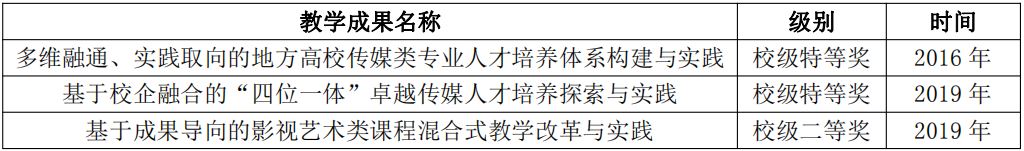 “十三五”期间,学院立足于专业特点和行业需求,积极推进人才培养模式改革,构建了“多维融通、实践取向”的传媒类专业人才培养体系和“大平台、多模块、重融合”的课程体系,搭建了“项目制、工作室制、传媒文化节”等实践平台。2016年、2019年连续两届荣获校级优秀教学成果奖特等奖。