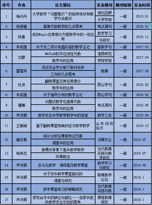 近五年专业教师教学论文发表情况