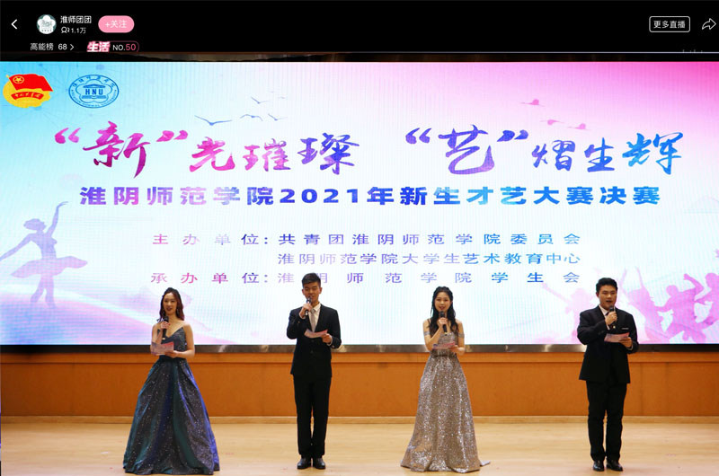淮师新闻网12月7日电(记者夏振华 张越睿 李苗苗)12月3日—4日晚,淮阴师范学院2021年“‘新’光璀璨 ‘艺’熠生辉”新生才艺大赛在长江路校区音乐报告厅举行。本次比赛采取线上线下相结合的方式,通过bilibili直播平台同步播出,1.1万人次观看了本次比赛。活动邀请了团市委学少部部长张晓婷、校大艺中心主任王玮、校团委副书记董旭冉、淮安本土音乐人张申申担任本次大赛评委。