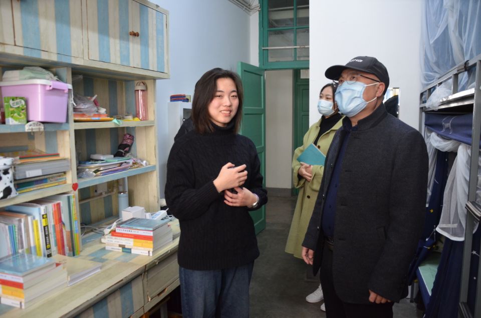 刘小华与学生们进行了亲切的交谈,详细地询问了学生在校期间的生活状态,叮嘱大家在网课期间注意寝室卫生,安全用电,同时不要松懈,要保持积极的学习状态,他鼓励同学们要相互理解,相互包容,努力营造一个安全、卫生、文明、和谐的宿舍环境,为大学生活奠定坚实基础。