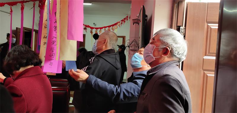 专题报告结束后,进行了“党建知识”“喜迎二十大”“迎壬寅庆冬奥”“入党誓词”等四个专题猜灯谜活动。淮阴师范学院退休党员曹成荣现场分析谜面,在传授大家猜灯谜的技巧中普及党史知识,活动现场气氛热烈活跃,营造了喜迎二十大的浓厚氛围。