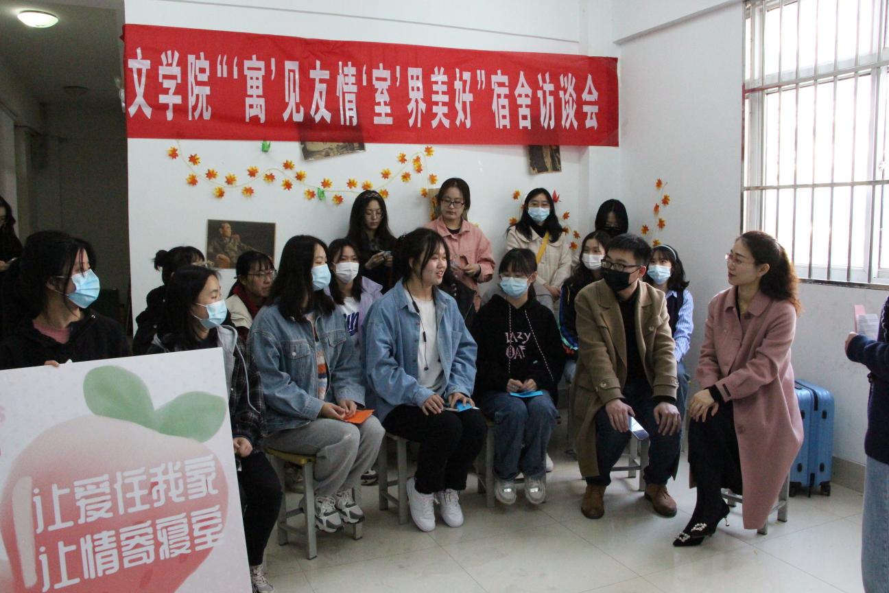 活动周期间,文学院辅导员管婷婷、许帆扬和王云路来到22号楼105参加了宿舍访谈会并深情寄语。部分女生宿舍长和心理委员参加了会谈。在舍长交流环节,各位舍长热情大方的介绍了自己宿舍的总体情况,舍友们的性格特点并分享了宿舍共处的经验方法,也提出了人际交往中的困惑和意见。管婷婷从“看高”“看远”“看淡”三点提出宿舍人际关系解决的建议和意见。许帆扬强调了沟通交流的重要性。管婷婷以“同学有缘 宽容是金——大学生宿舍人际关系漫谈”为题,为所有女生舍长和心理委员开设了专题讲座。她由“缘”字展开,结合自身经历与感受,倡导同学们惜缘、聚缘、随缘,并就人际交往中出现的问题提出了切实可行的解决方法。