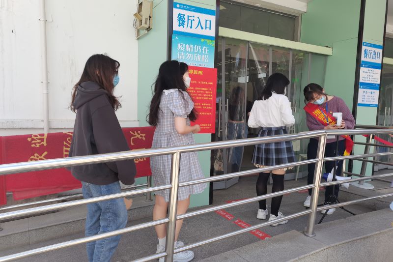 活动中,学生党员志愿者根据学校防疫工作实际需求,积极投身到疫情防控工作中。在全员核酸检测中,党员志愿者们坚守在核酸检测出口处,协助医护人员维护核酸检测现场秩序,做好学生引导、信息登记等工作,构建疫情防控的一道防线。学生就餐时,党员志愿者们主动作为,及时提醒同学们规范戴口罩、测体温、保持一米间距,遵守学校防疫要求,充分地展现党员的责任担当和初心使命。党员志愿者们分布在校园内,热心帮助同学们做好防疫工作,从严从实做好防疫工作,用实际行动诠释责任与担当。疫情当前,所有党员志愿者积极配合学校疫情防控工作,引领同学们进一步树牢正确的防疫抗疫观念,增强集体凝聚力,让党旗在防控疫情第一线飘扬。
