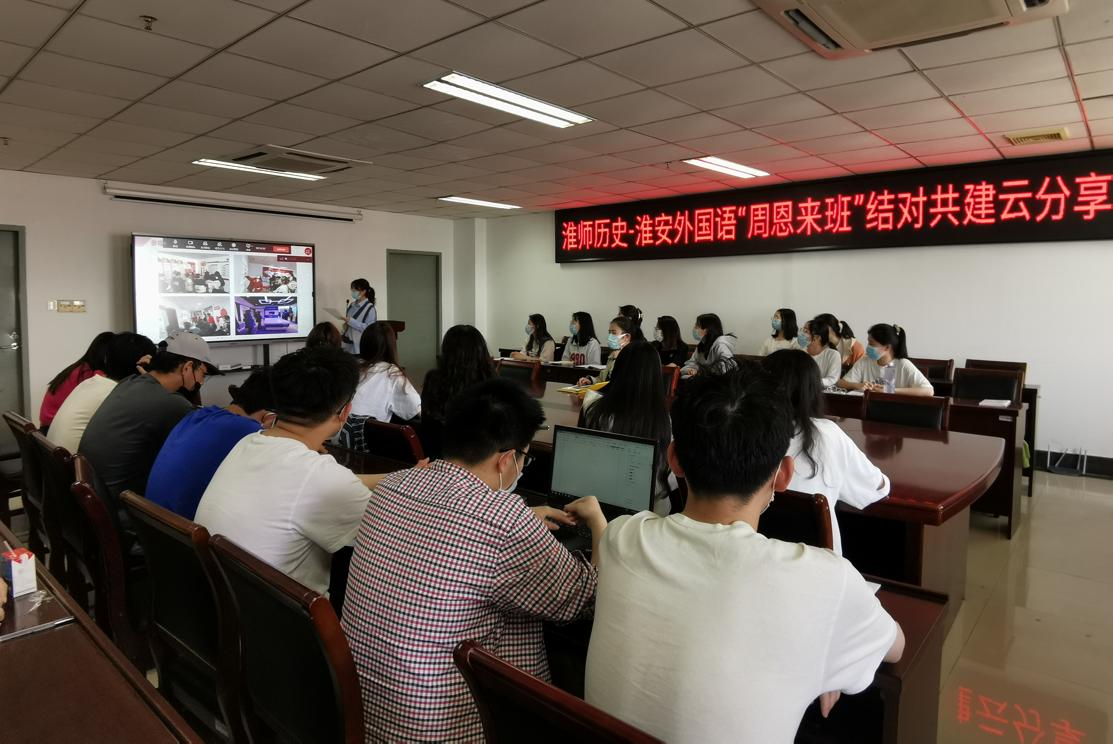 淮师新闻网4月27日电(记者 李璇 林麟)为深化“周恩来班”创建,引导同学们将学习伟人精神与思想引领相结合,坚定理想信念,4月26日下午,淮阴师范学院历史文化旅游学院与淮安外国语学校初一(6)班开展“周恩来班”结对共建云分享活动。淮安外国语学校教学教研处主任、初一(6)班班主任张诚、历史学院团委书记林麟、辅导员纪群和双方创建班级全体学生参加本次活动。