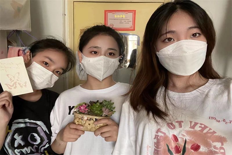 走访活动在轻松愉快的氛围中顺利展开,学生们的热情和积极的状态让老师们倍感欣慰,老师们为同学们送上了口罩,嘱咐同学们在校园里出行要时刻不忘戴上口罩;贴心送上了暖心卡片,鼓励同学们珍惜时光,专注学业;对在学院卫生评比中表现优秀的宿舍送上了可爱的绿色植物,希望同学们可以保持蓬勃的朝气和绿色的心情,微笑迎接生活的每一天。