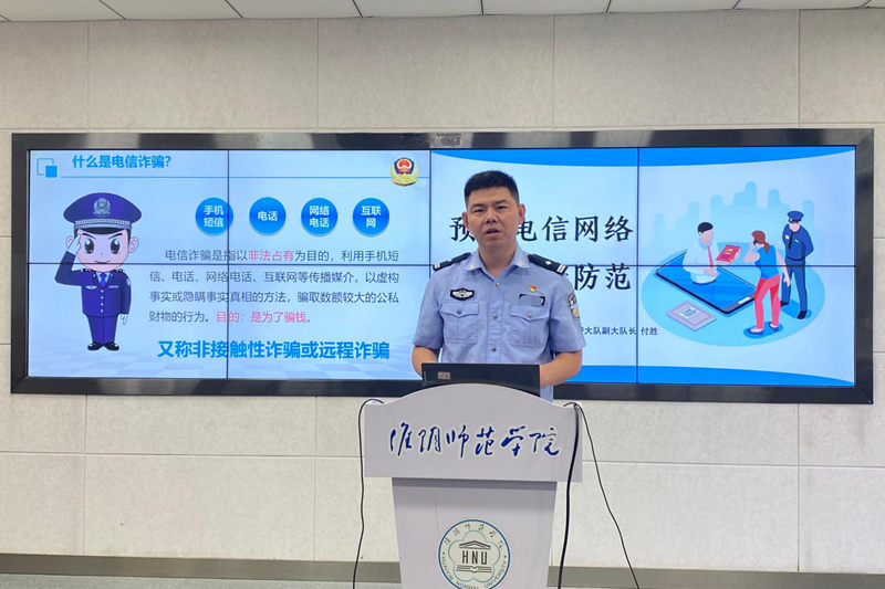 为提高自我保护意识,学校邀请到淮安市公安局淮阴分局刑警大队副大队长付胜为广大新生开展了《预防电信网络诈骗宣传防范》的安全教育讲座。他以身边真实案例进行剖析,分别介绍了奖学金骗局、刷单骗局、非法网贷骗局、盗用身份骗局、兼职骗局、网络客服骗局、博彩投资骗局和网恋骗局等多种电信网络诈骗形式。他提醒同学们六个“一律”,只要一谈到银行卡、中奖、“电话转接公检法”、短信链接、陌生人发来的链接以及“安全账户”等以上情况的,一律是诈骗,一定要切实有效保护好自身权益。