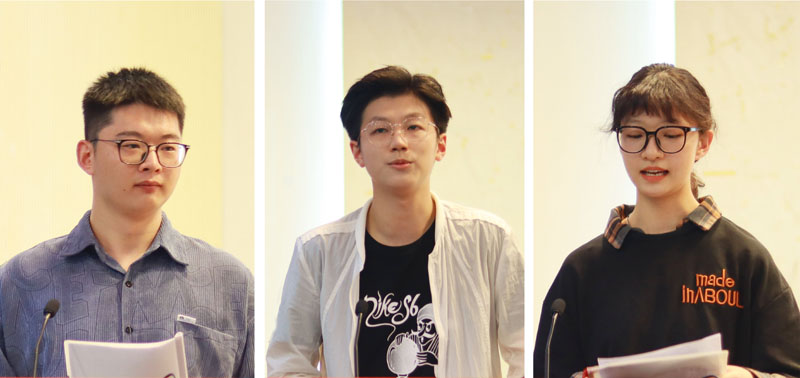 2019级考研成功的江兆飞同学和刘培翔同学进行了考研经验与心得分享。他们各自介绍了自己准备考研的过程,给同学们推荐了自己考研时的复习方案,指出了考研过程中应该注意的问题,并为同学们送上了自己的祝福和寄语。2020级准备考研的学生代表陈韵如同学作表态发言,她讲述了自己决定考研的心路历程,提醒同学们在选择考研院校时切忌好高骛远,要结合自身实际,合理选择报考学校。