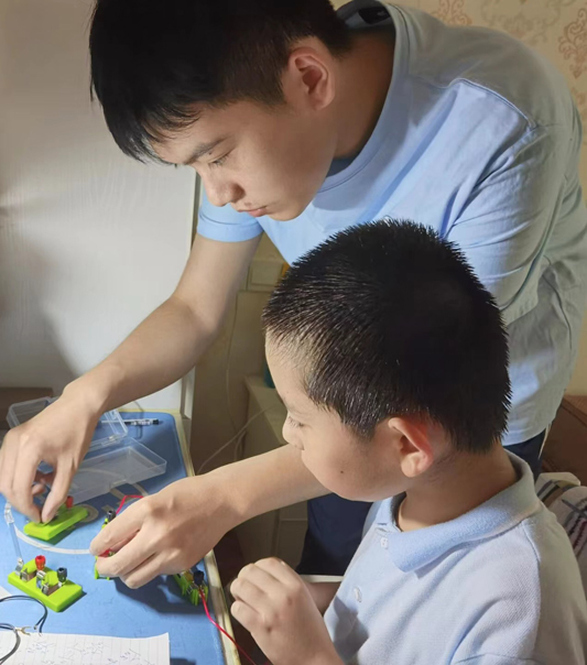 在研究院科教中心,实践团成员为淮安实验小学的同学展示了物理专业的经典实验,他们扮演起了科普小老师,通过生动俏皮的语言还原物理实验的“前世今生”,与物理学家趣事、生活相关热点等相结合,将实验原理、操作过程直观呈现,带领小学生体验物理实验课堂,探索科学乐趣。