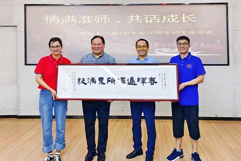 淮师新闻网7月27日电(记者 曹玉华 姬广建)7月25日下午,淮阴师范学院原地理系99级(1)班校友重聚母校,地理科学与规划学院举行“情满淮师 共话成长”毕业二十周年师生座谈会。副校长毛广雄出席座谈会,地理科学与规划学院党委书记殷成志、院长刘传明、副院长王怀军、99级(1)班班主任陈良参加活动。