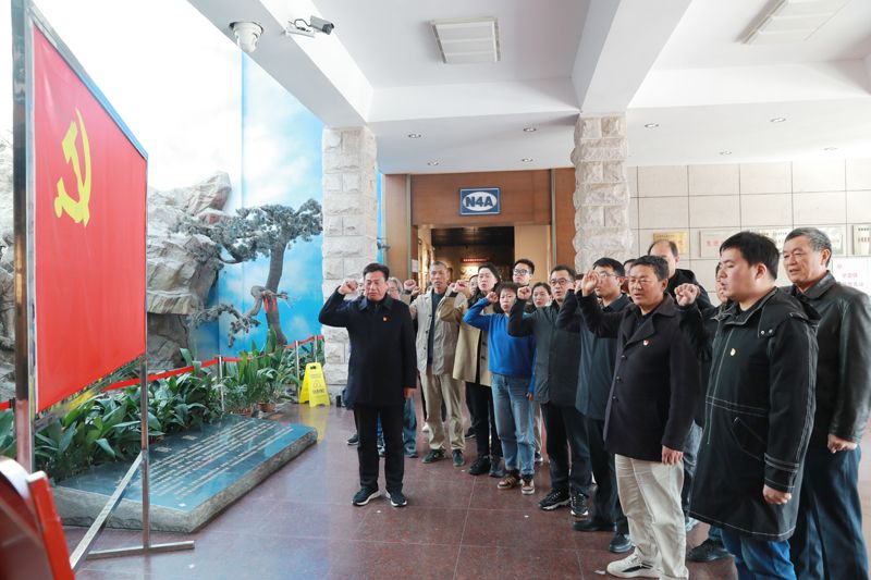 在句容茅山新四军纪念馆,大家在讲解员的带领下,一张张图片、一件件实物、一个个故事,真实再现了以茅山为中心苏南抗日根据地的光辉历程,生动再现了新四军和苏南人民抗日斗争的历史风貌,重温了波澜壮阔的抗日革命岁月,感受和学习了新四军“铁军”精神。在茅山新四军纪念馆内,全体党员重温入党誓词,回顾入党初心。