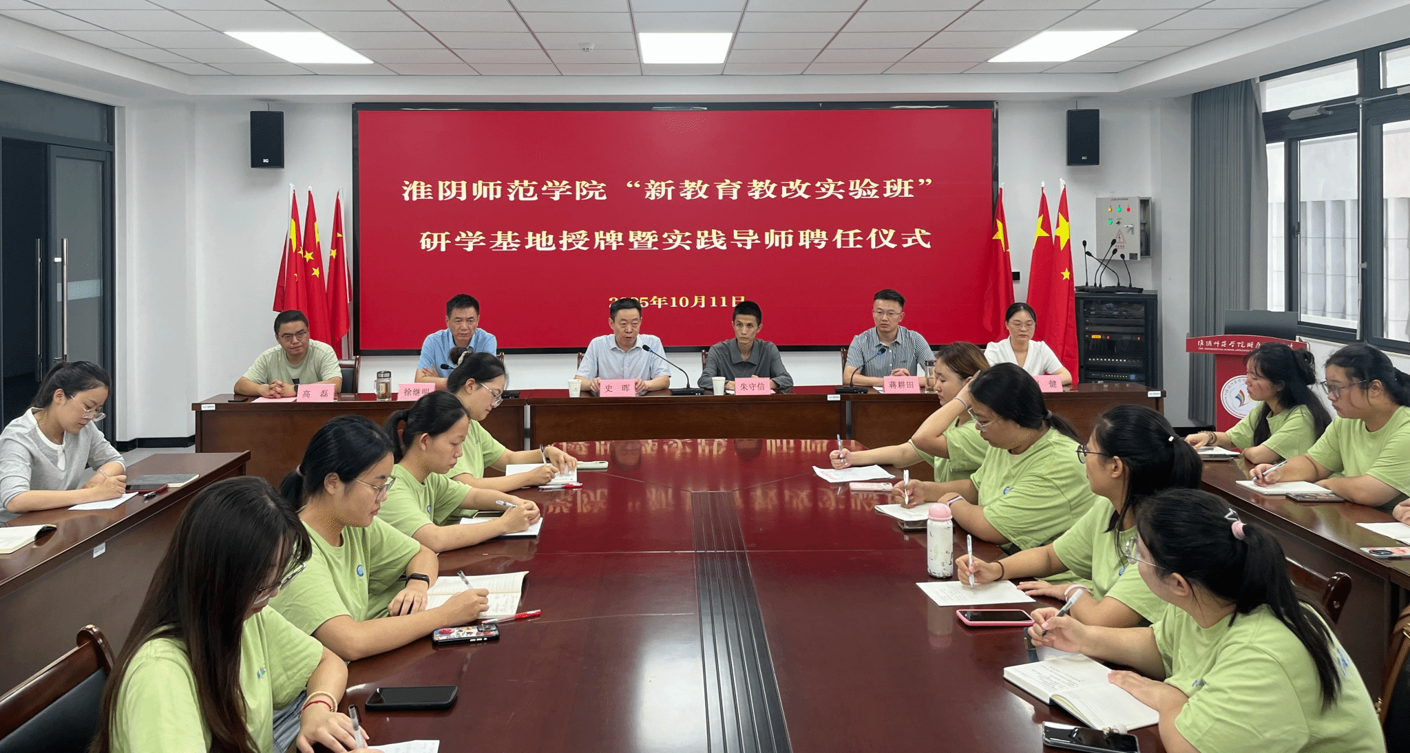 淮师新闻网10月12日电(记者 朱守信)10月11日下午,淮阴师范学院“新教育教改实验班”赴淮阴师范学院附属实验学校举行研学基地授牌暨实践导师聘任仪式。淮阴师范学院教师教育学院院长史晖、副院长朱守信,“新教育教改实验班”全体同学参加此次活动。淮阴师范学院附属实验学校党总支书记徐继明,校长蒋耕田,副校长赵健、高磊及实践导师代表出席仪式。