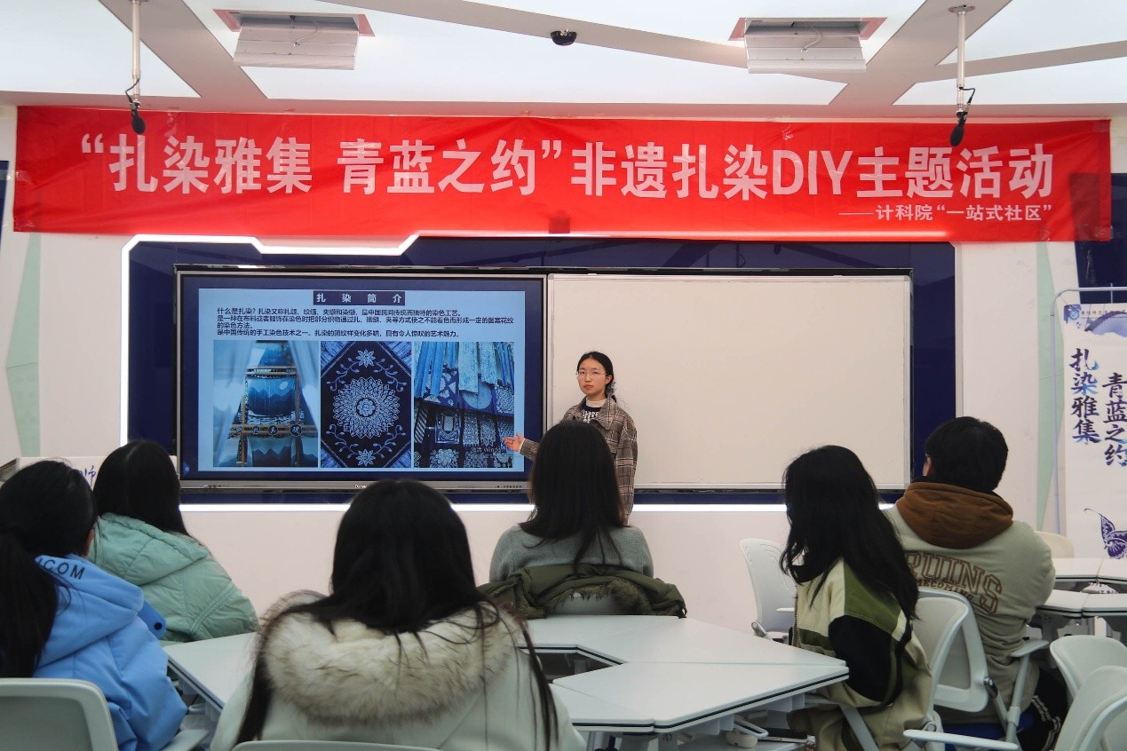 淮师新闻网3月29日电(记者 朱静文)为深入贯彻落实“五育并举”教育方针,深化“一站式”学生社区文化建设,将美育融入学生日常生活,提升学生动手能力与审美素养,近日,计算机科学与技术学院举办了“扎染雅集,青蓝之约”非遗扎染DIY活动。活动通过理论讲座与实践体验相结合的方式,带领同学们沉浸式感受非遗技艺的独特魅力。