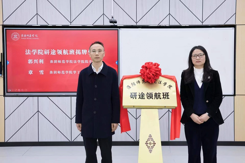 淮师新闻网4月22日电(记者 许飞)4月20日下午,法学院在综南404智慧教室举办“研途领航班”成立仪式。法学院院长郭兴利、党委学工部副部长章雪共同为“研途领航班”揭牌。领航班全体同学和全体辅导员参加本次仪式,仪式由法学院党委副书记唐力主持。