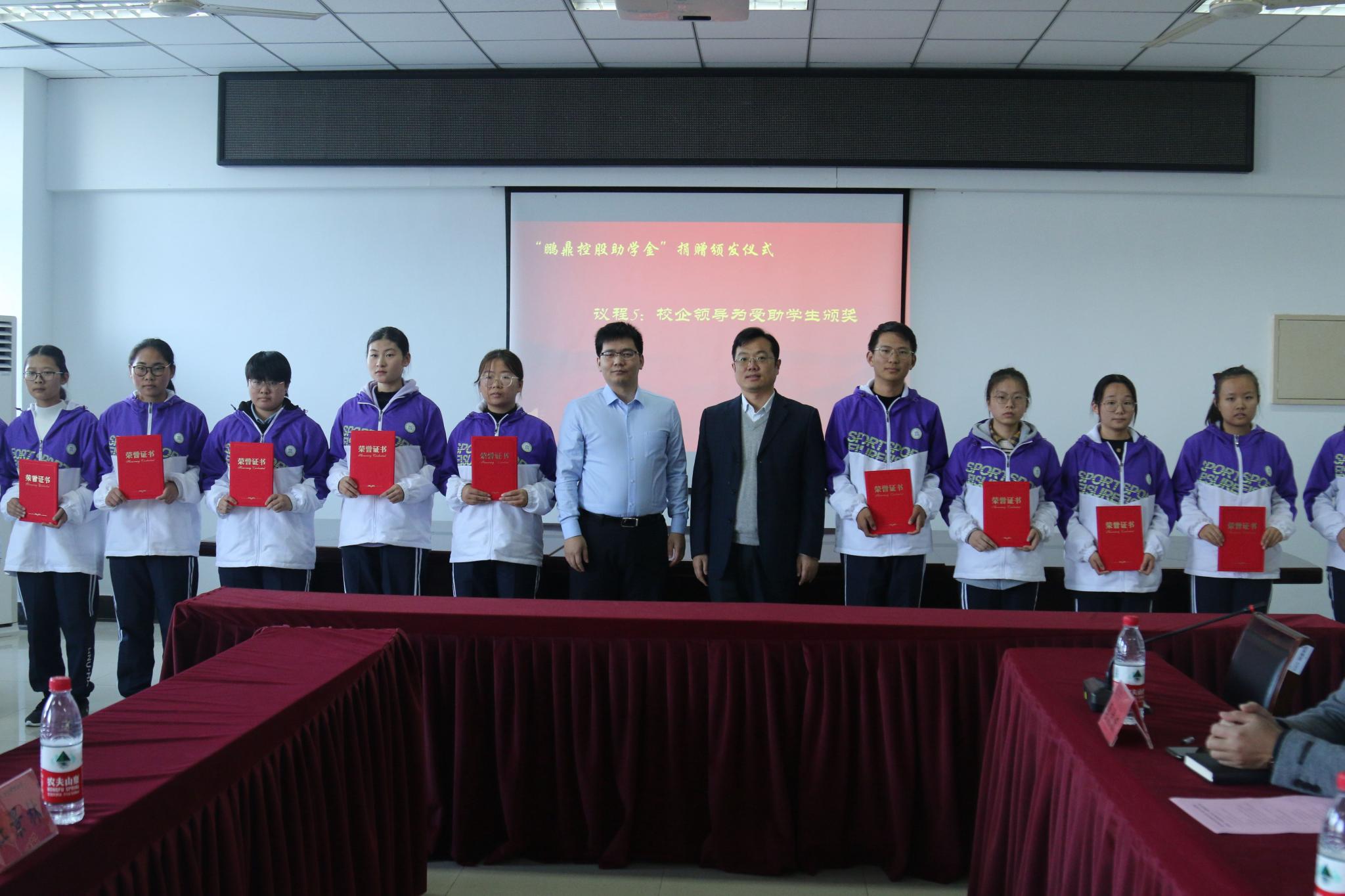 胡元林宣读了鹏鼎控股助学金获奖学生名单。与会领导为获奖同学颁发荣誉证书。