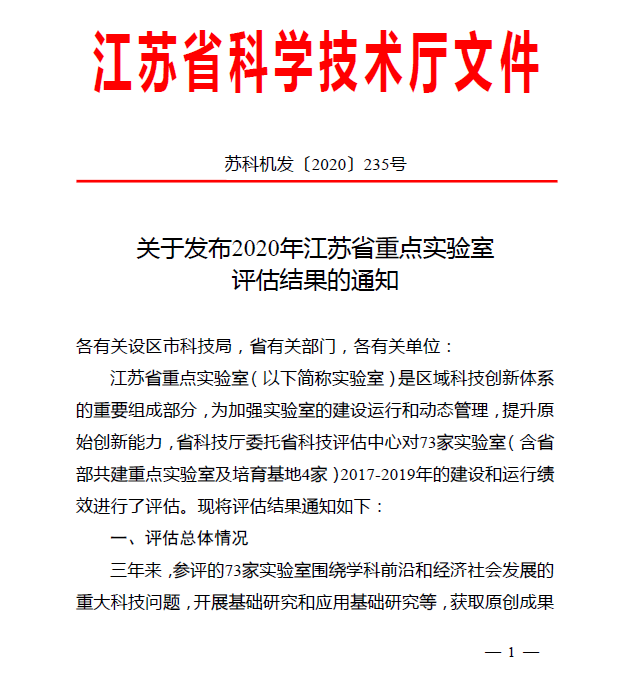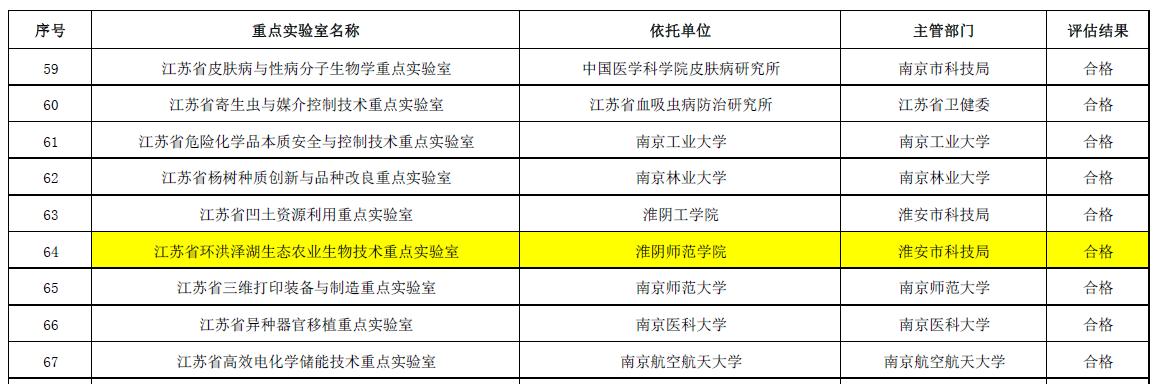 江苏省环洪泽湖生态农业生物技术重点实验室圆满完成建设任务,顺利通过省科技厅三年一次的绩效评估,并获得“合格”等第和持续建设。