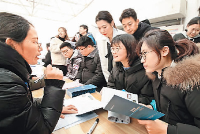 2019年12月8日,江苏淮安淮阴师范学院举办江苏省百校联动就业活动暨2020届毕业供需洽谈会。此次有学校、企业370多家单位参加就业洽谈,提供17000余个岗位供毕业生挑选,助力他们就业创业,受到大学生欢迎。 赵启瑞摄(人民视觉)