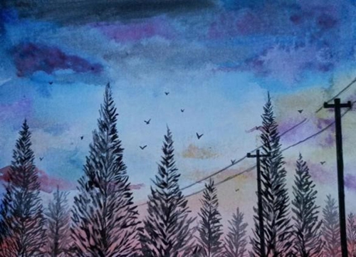 后来,我上了大学,家门前,只剩下妹妹一人,儿时的欢闹也消退了许多,于是便送了妹妹一幅画,画的我家门前,希望能留住这美景,希望妹妹永开笑颜。