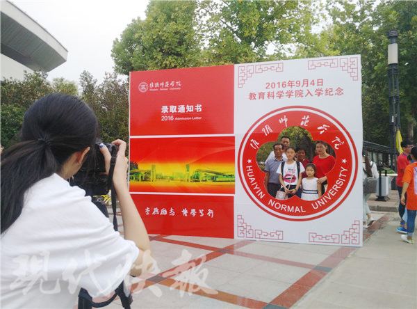 在新生报到处,教育科学学院设立的入学留影纪念墙,吸引了众多当天到校报名的新生和家长。纪念墙的背景是以录取通知书为主要画面,另一侧是被精心 " 掏空 " 的人像空间,只要新生和家长站在这个空间里,拍摄后自然就形成了让他们终身难忘的入学纪念照。该院副书记戴云告诉现代快报记者说,设立入学留影纪念墙的目的,是让新生在开学时留下一个美好的回忆,大学生活是人生成长的重要一站,留影后让学生有归属感,和家长合影是让他们感受到学校的用心良苦,让家长对孩子在校的学习、生活放心。