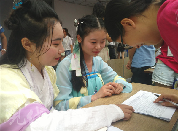 历史文化旅游学院的师姐着古装接待新生报名,给现场增添了靓点。
