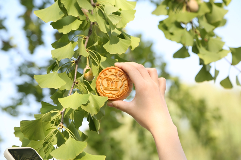 图为定制“校徽月饼”。记者 彭若男 摄
