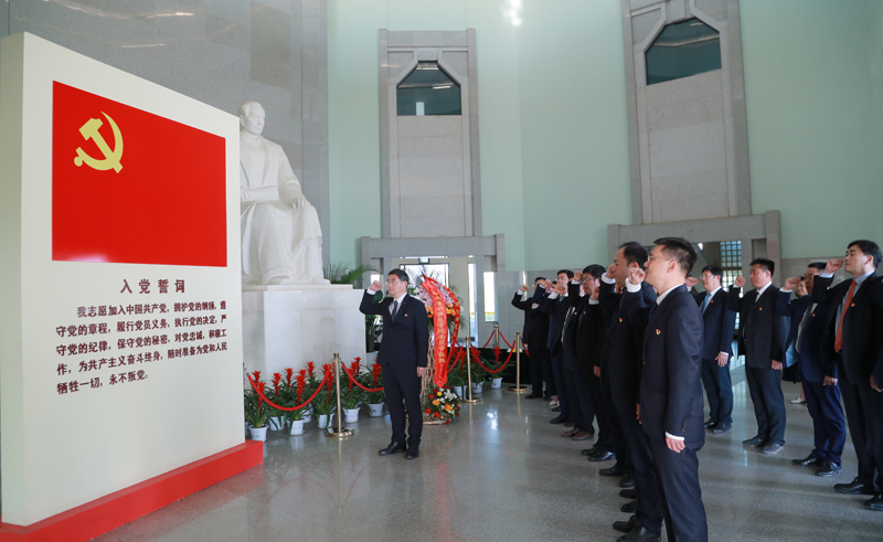 随后,“两委”委员来到周恩来纪念馆,在周恩来总理汉白玉座像前静默肃立。校党委书记尚洪波走到敬献的花篮前整理缎带,大家一起向周恩来总理汉白玉座像深深三鞠躬。面向鲜艳的党旗,尚洪波领誓,全体同志一起重温入党誓词。