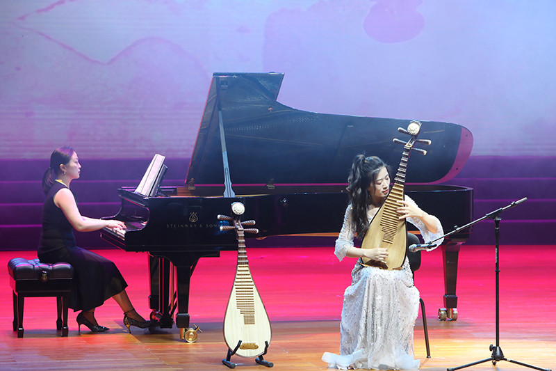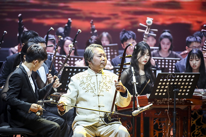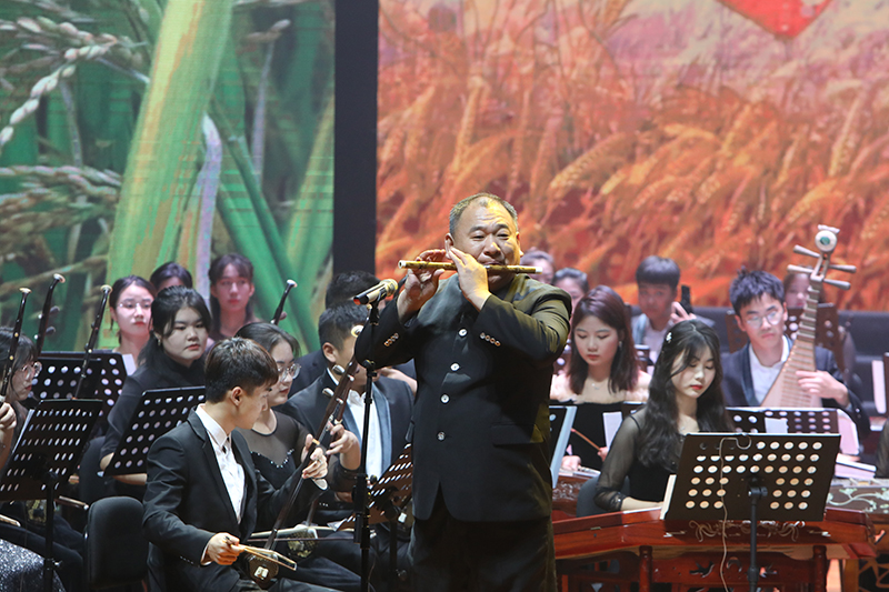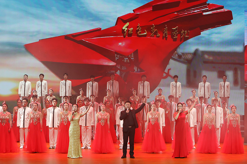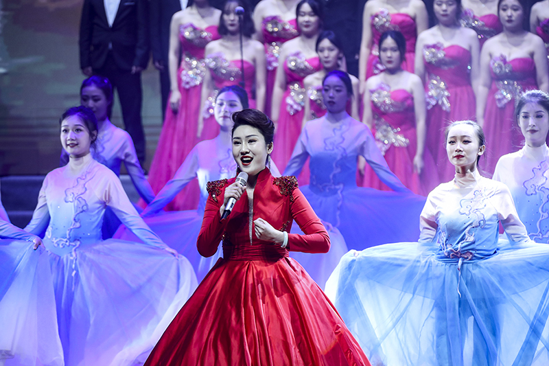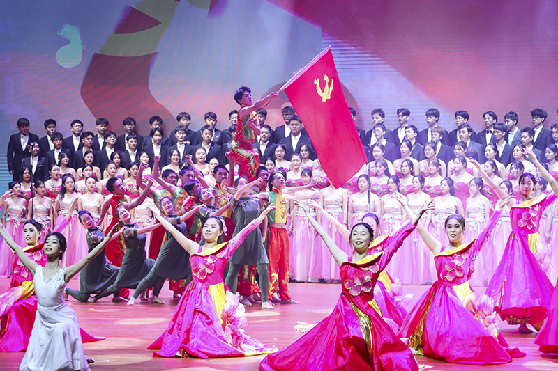 “吃水不忘挖井人”“没有共产党就没有新中国”,活动在合唱《在灿烂阳光下》中拉开帷幕,朴实的情感,优美且高昂的旋律,讲述了中国共产党团结带领全国人民走过的风雨历程,赞颂了新中国成立以来所取得的伟大成就。《保卫黄河》《黄河颂》《战旗·刘老庄》《云想花想》等节目,用音乐描绘出革命先辈们保家卫国英勇抗争的爱国豪情,演绎出中华民族顽强不屈的奋斗精神与革命意志。女声独唱《我的祖国》委婉动听,甜美的歌声将第二篇章的主题《追随》深情引入。《追随》《我心中的红》《唱支山歌给党听》演绎出全国人民永远跟党走的坚定信念。第三篇章通过《扬鞭催马运粮忙》《海棠》《诗颂风华》《领航》来展现全国人民在中国共产党的领导下取得丰功伟绩的光荣图景,书写党带领人民昂首阔步迈向新征程建功新时代的华章。