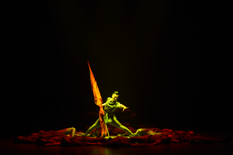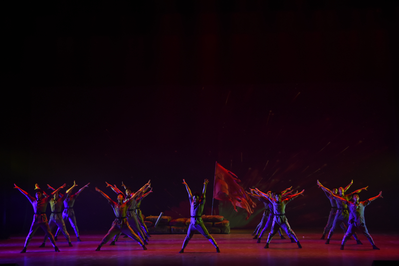 舞蹈诗《江淮故事》是由音乐学院师生精心策划打造的一部党史学习教育原创舞蹈艺术作品。该作品以地方红色资源为素材,通过舞蹈的形式讲述发生在淮安这片热土上的刘老庄八十二烈士、车桥战役以及伟人周恩来的故事,由舞蹈《战旗》《亮剑-车桥》《你是这样的人》《海棠》《我和我的祖国》五个部分组成。作品将党史编成短剧,用舞蹈创作弘扬伟大建党精神,讲好中国故事,展现可信、可爱、可敬的中国形象。