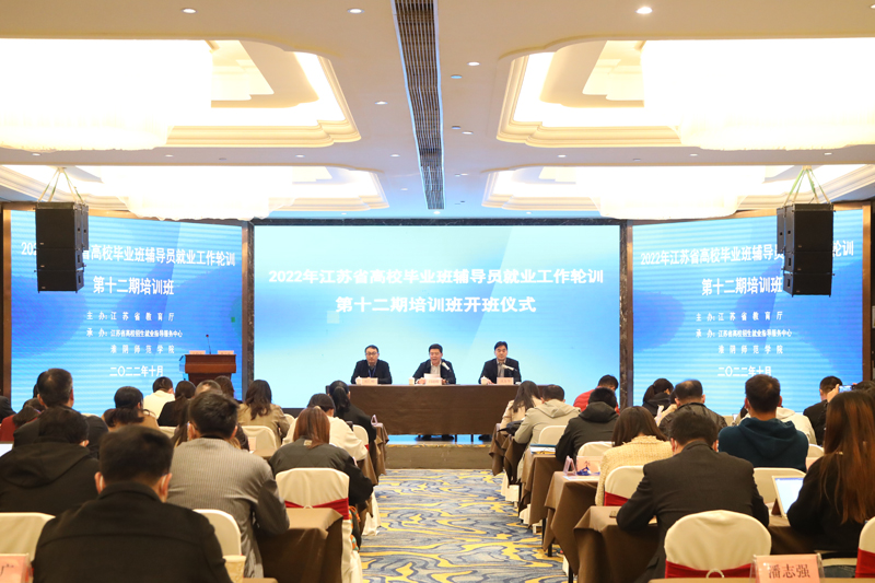 淮师新闻网10月27日电(记者 唐力 王婷)10月26日上午,由江苏省教育厅主办,江苏省高校招生就业指导服务中心和淮阴师范学院承办的2022年江苏省高校毕业班辅导员就业工作轮训第十二期培训班开班仪式在淮安举行。淮阴师范学院副校长闫超栋出席开班仪式并致辞。开班仪式由淮阴师范学院招生与就业处处长沈东华主持。来自淮安市、宿迁市19所院校的140余名2022届毕业班辅导员参加培训。