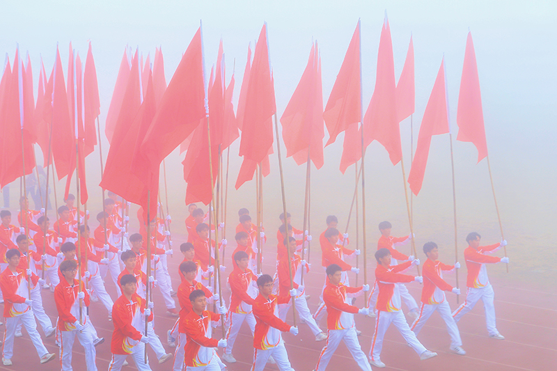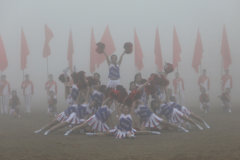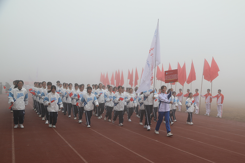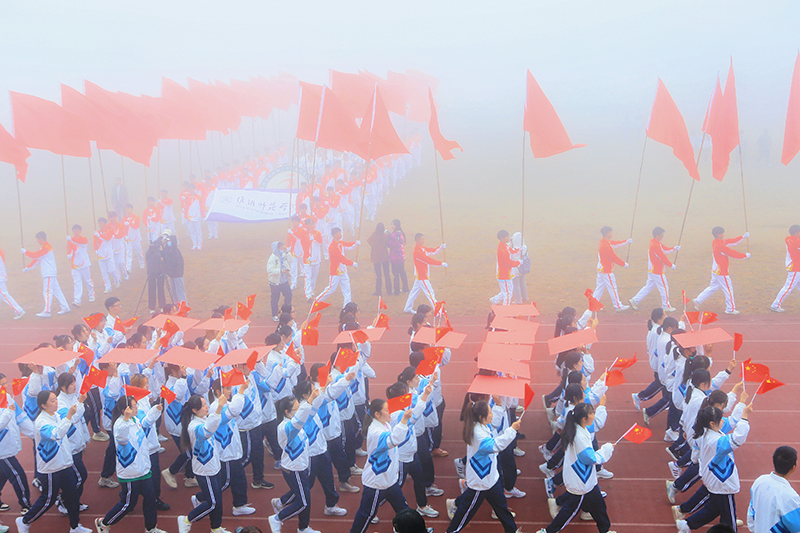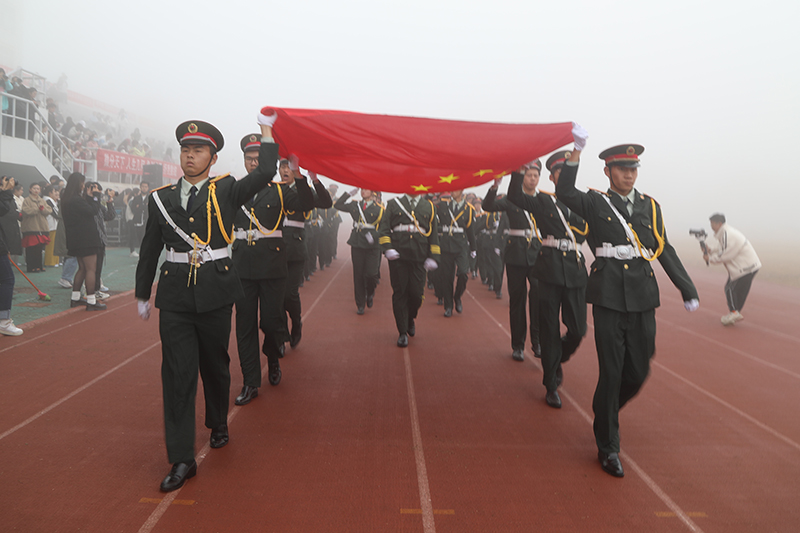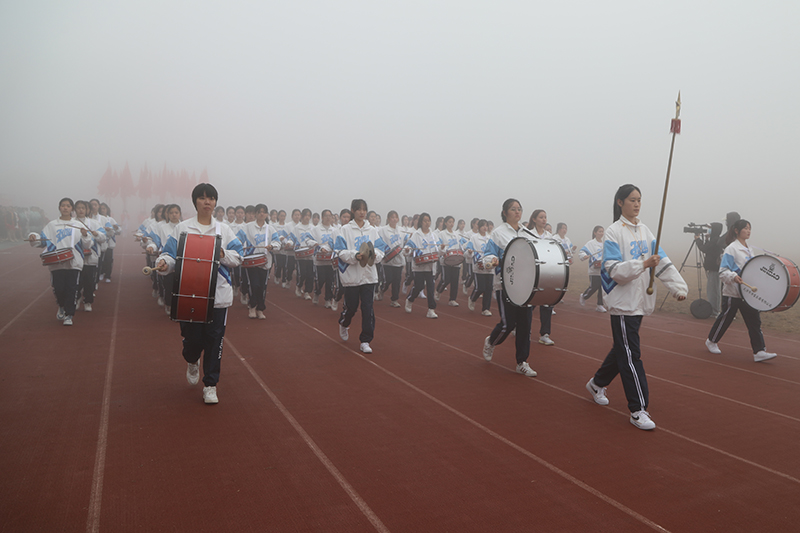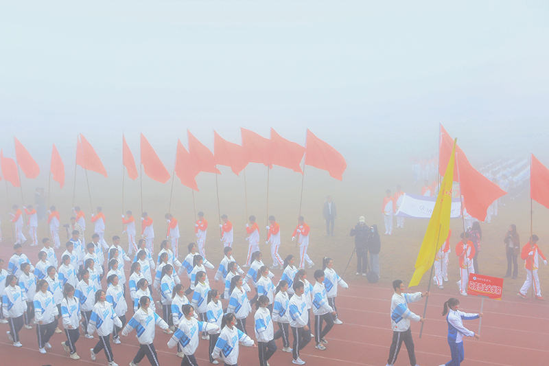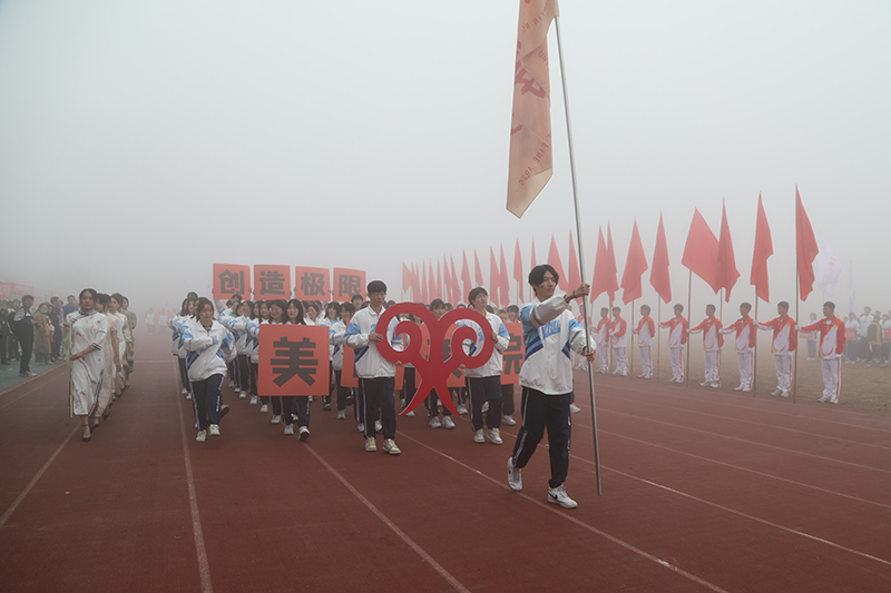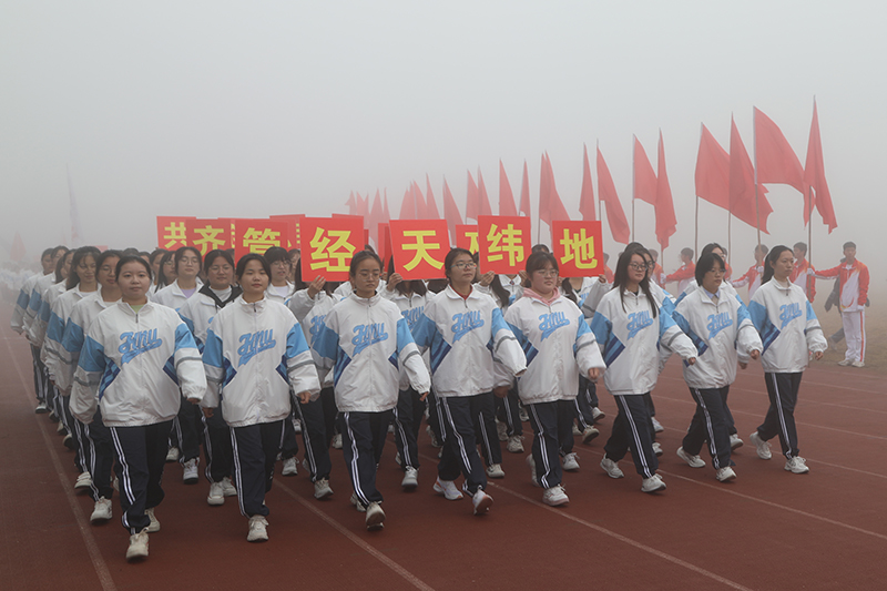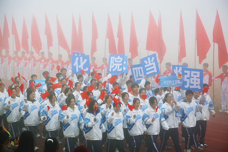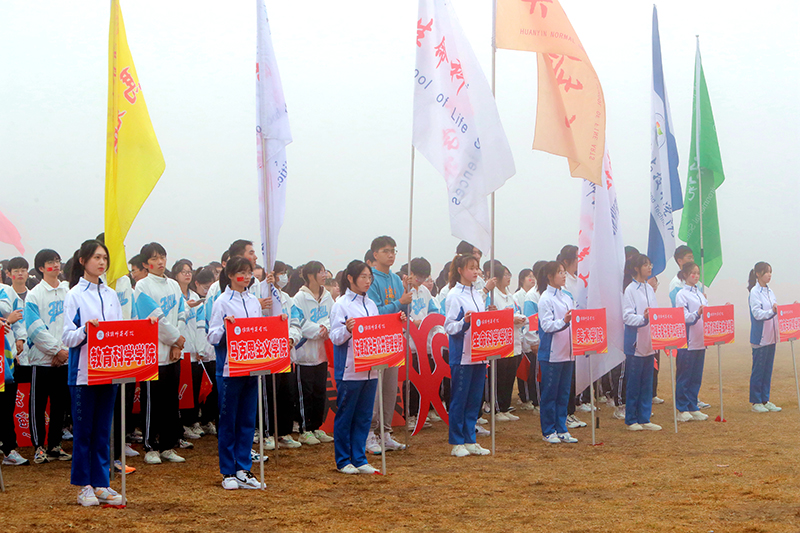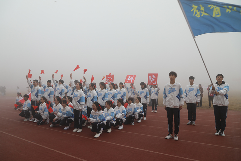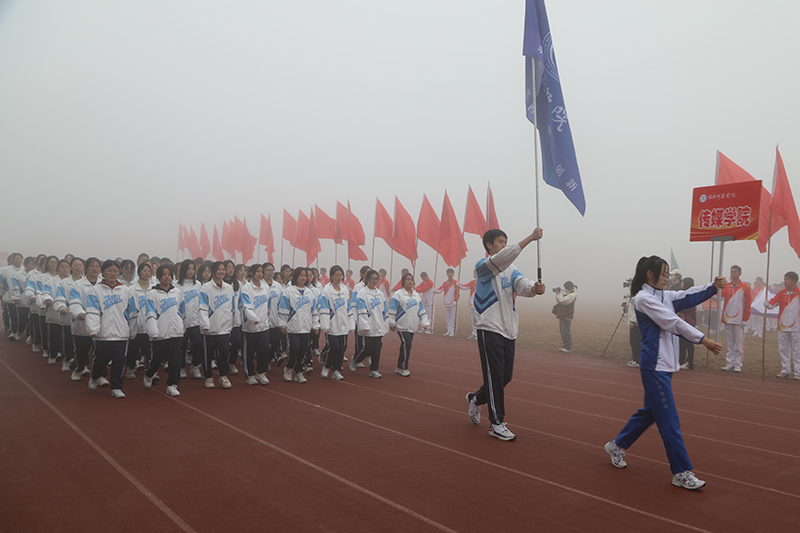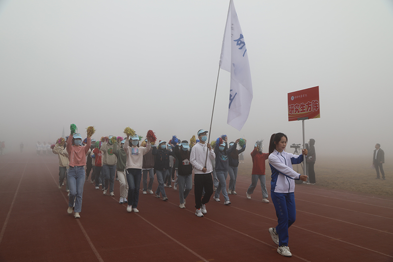 在激进昂扬的运动员进行曲中,国旗、校旗、会徽、军鼓乐团、彩旗、裁判员、研究生院、各二级学院等方阵依次入场,意气风发地走过主席台。