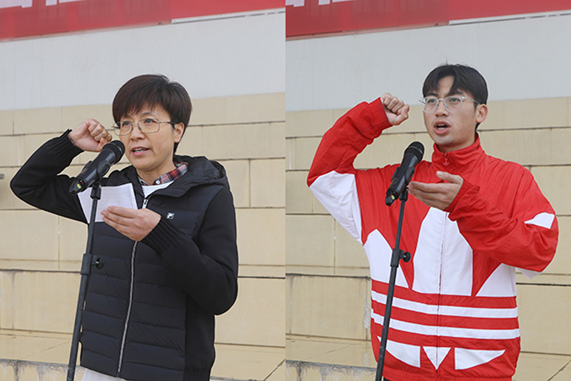 来自体育学院的高彩暇老师和物电学院的高硕同学分别代表裁判员和运动员宣誓。