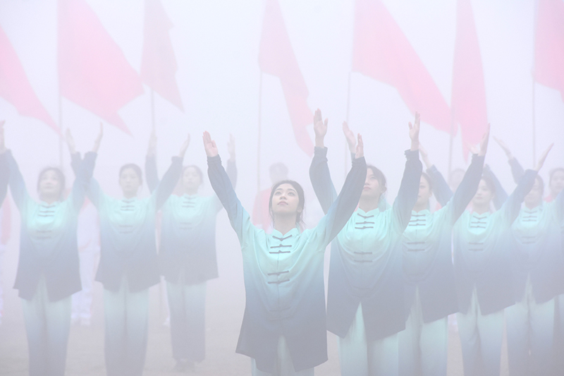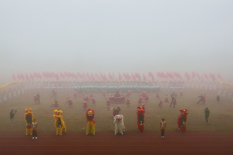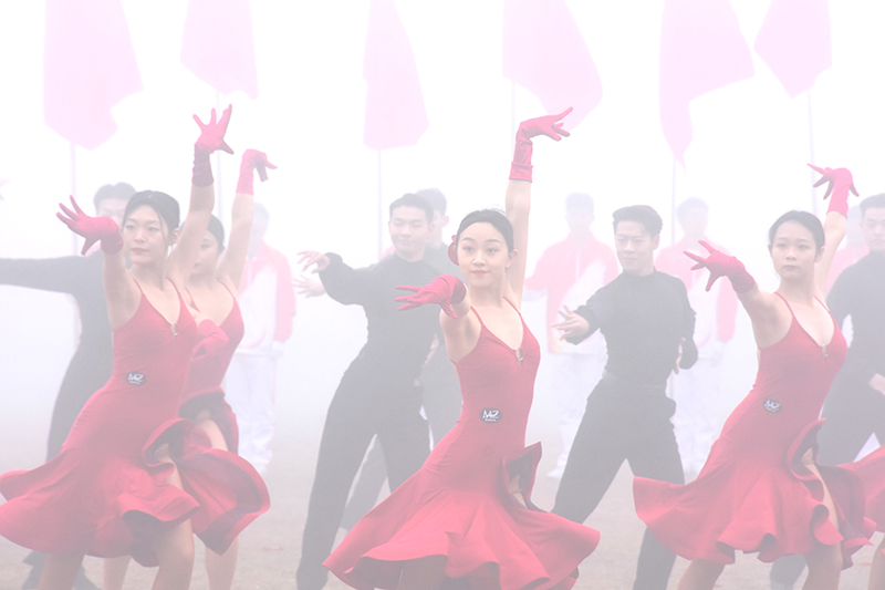 开幕式上举行了大型文体表演。《盛世欢歌》龙狮表演活灵活现,红绸翻飞激情澎湃;《健身气功》刚柔相济,博大精妙;《啦啦操》动作整齐划一,洋溢青春热情;《拉丁风暴》舞蹈精彩绝伦,演绎最美芳华。各个团队的精彩演出彰显了淮师学子的青春活力与蓬勃生气,点燃了赛场氛围。