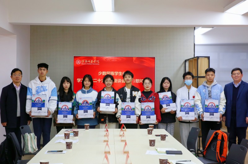 座谈会气氛温馨活跃,闫超栋与少数民族同学亲切交流,详细了解同学们在学校的学习和生活情况,少数民族同学畅谈大学四年规划、本民族的风俗文化等,并围绕学习、生活等方面提出问题,发表意见和建议。闫超栋、胡元林共同为少数民族学生代表发放慰问品。