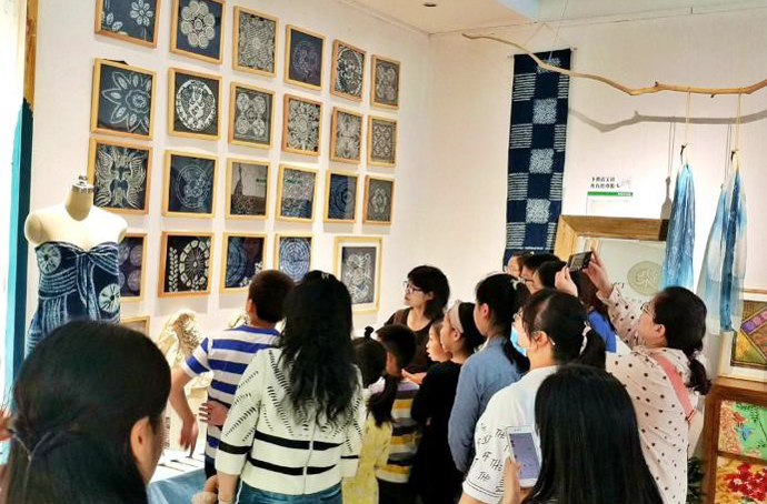 钱敏老师是淮安市传统扎染非遗项目代表性传承人。现为江苏省民间文艺家协会会员、淮安市民间文艺评论家协会理事、清江浦区非遗协会副会长。她出生于绘画织染艺术世家,在淮阴师范学院美术学院传承教学扎染技艺已27年,长期致力于非物质文化遗产传承及推广工作。钱敏老师遵循传统技艺的同时不断进行创新,致力于让“非遗”走进现代人的生活中,她创立“蓝印工坊”工作室,面向市民开展传统文化体验活动,提升人们对植物染文化的了解和兴趣。推出扎染技艺体验、扎染系列课程培训等项目,面向社会宣传推广非遗文化,每年参加国内、国际各项展览,让世界各国人民近距离感受运河之都的非遗魅力。