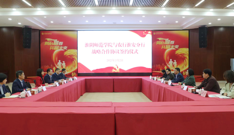 淮阴师范学院财务处、招生与就业处、经济与管理学院,中国农业银行淮安分行人力资源部、机构业务部、公司与投行业务部等部门负责人参加签约仪式。