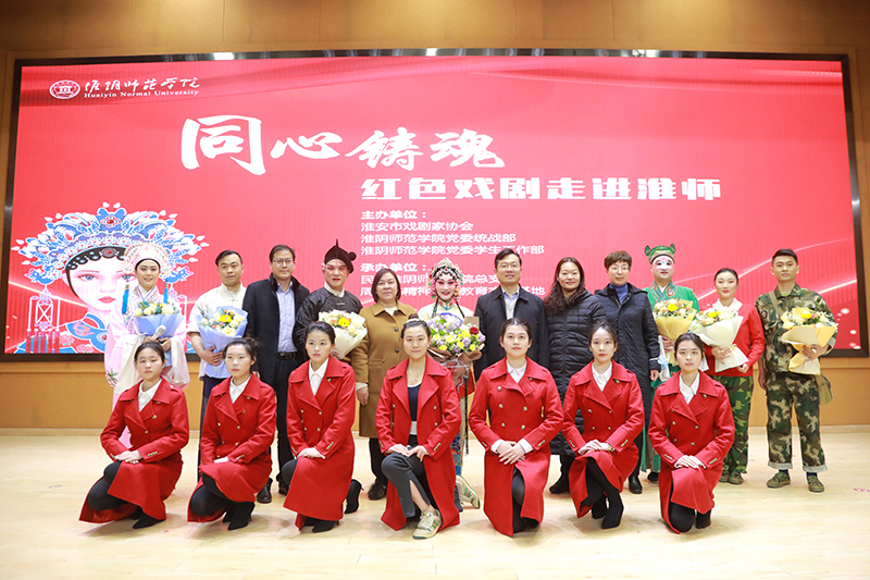 淮师新闻网3月24日电(记者 宋超)3月23日晚,红色戏剧在淮阴师范学院崇文楼阶梯106上演。此次演出活动由淮安市戏剧家协会、淮阴师范学院党委统战部、淮阴师范学院党委学工部主办,民进淮师总支、周恩来精神同心教育实践基地承办。副校长张言彩和党委统战部,党委学工部,学校相关民主党派基层组织、统战团体负责人同现场300余名师生共同观看了演出。