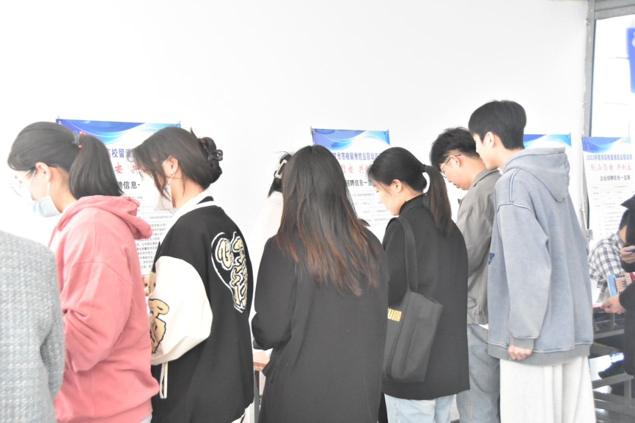 招聘会现场秩序井然、气氛热烈。同学们带着自己精心准备的简历主动与用人单位交流,各招聘单位通过海报展示、面对面交流等方式向同学们介绍单位概况、岗位需求以及员工福利。