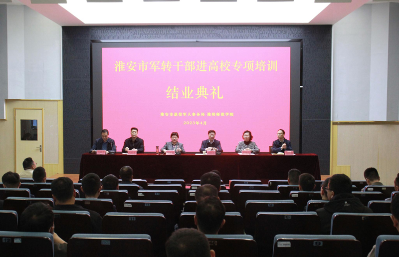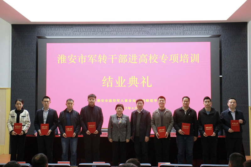淮安市退役军人事务局移交安置处处长张爱军、副处长郑鸣,淮阴师范学院法政学院相关领导出席了结业典礼。