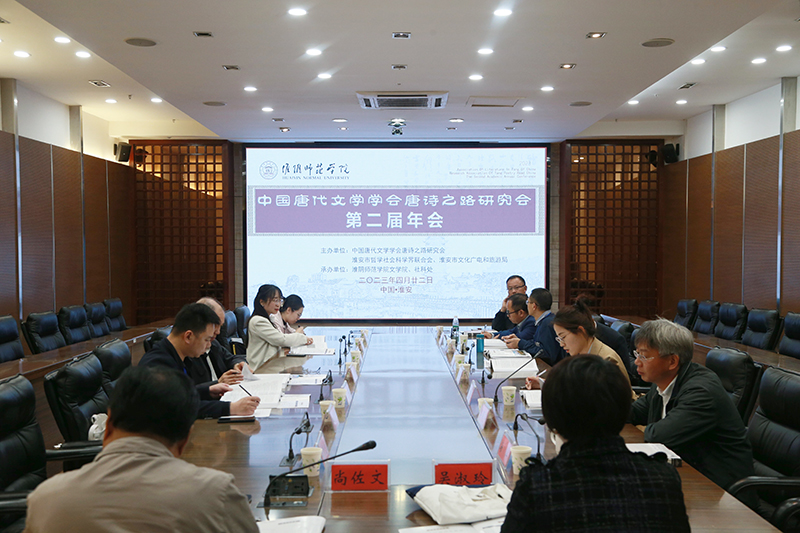 淮师新闻网4月24日电(记者 管婷婷)4月22至23日,中国唐代文学学会唐诗之路研究会第二届年会在淮阴师范学院举行。淮阴师范学院党委书记尚洪波,淮安市委宣传部副部长、社科联主席赵志鹏出席会议并致辞。唐诗之路研究会会长卢盛江,原中国李白研究会会长、唐诗之路研究会顾问薛天纬,中国唐代文学学会会长、唐诗之路研究会顾问李浩,中国韵文学会会长、宋代文学学会副会长、唐诗之路研究会顾问肖瑞峰,唐代文学学会副会长、唐诗之路研究会副会长胡可先与罗时进,刘禹锡研究会副会长、唐诗之路研究会副会长戴伟华,中国史学会历史地理研究会副会长、唐诗之路研究会学术委员会副主任胡阿祥,中国地理学会历史地理专业委员会主任、唐诗之路研究会学术委员会副主任张伟然,以及来自全国各地百余名专家学者参加会议。