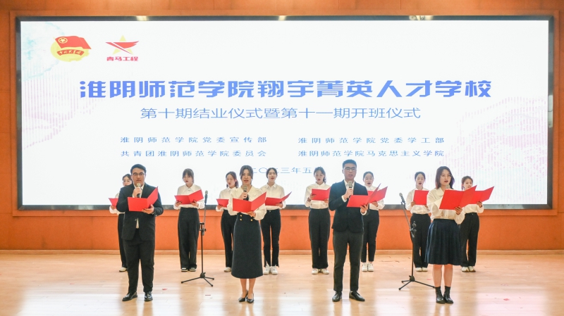 淮师新闻网5月11日电(记者 吴萱)5月10日下午,淮阴师范学院“青年马克思主义者培养工程”翔宇菁英人才学校第十一期培训班开班仪式暨第十期结业典礼在崇文楼阶106举行。副校长闫超栋出席活动并讲话,校党委宣传部、党委学工部、马克思主义学院、团委等部门负责人,以及翔宇菁英人才学校第十期的86名结业学员、第十一期的100名新学员参加了本次活动。