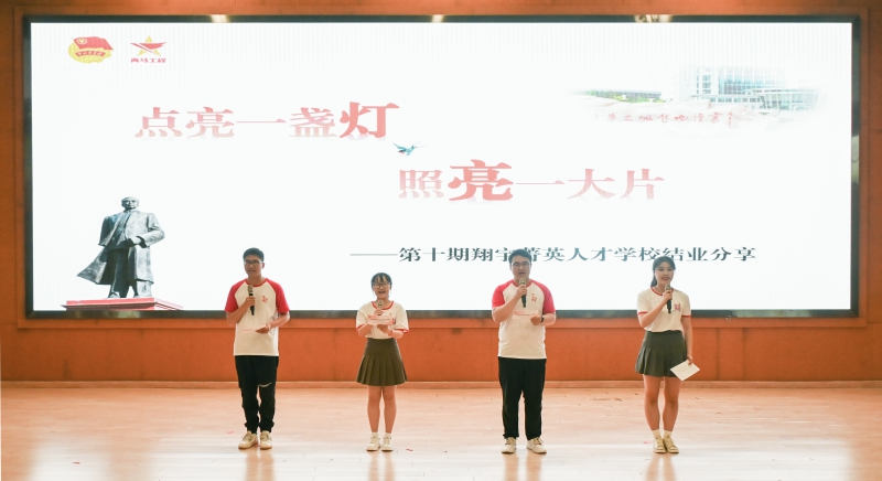 闫超栋指出,翔宇菁英人才学校是学校贯彻实施“青年马克思主义者培养工程”的重要举措,致力于培养和造就中国特色社会主义事业的合格建设者和可靠接班人。他对学员们提出三点希望:一是坚定理想信念,拥有向党为民的红心。要深入学习习近平新时代中国特色社会主义思想这一当代马克思主义,从党的百年奋斗中感悟信仰的力量,筑牢信仰之基。二是勤于学习实践,练就堪当重任的本领。要勤于学习、渴求真知,善于思考、上下求索,学以致用、知行合一,为人生发展打下坚实的基础。三是引领文明风尚,涵养积极奉献的情怀。要树立“奉献以我先行”的志向,用奉献来践行青春作为和青年担当。四是始终一往无前,保持昂扬奋斗的姿态。要把奋斗的底色擦亮,在推进中华民族伟大复兴的扎实奋斗中实现人生价值。