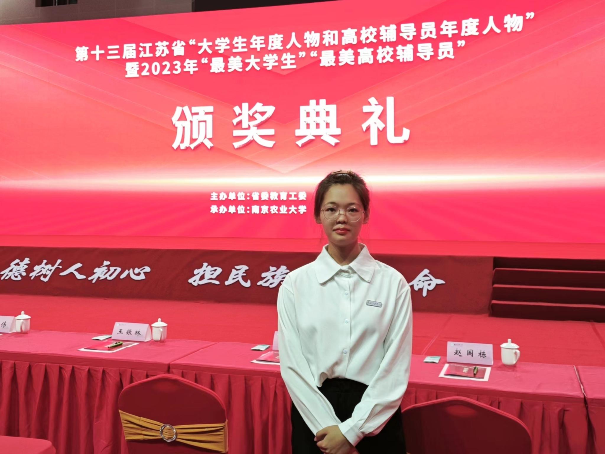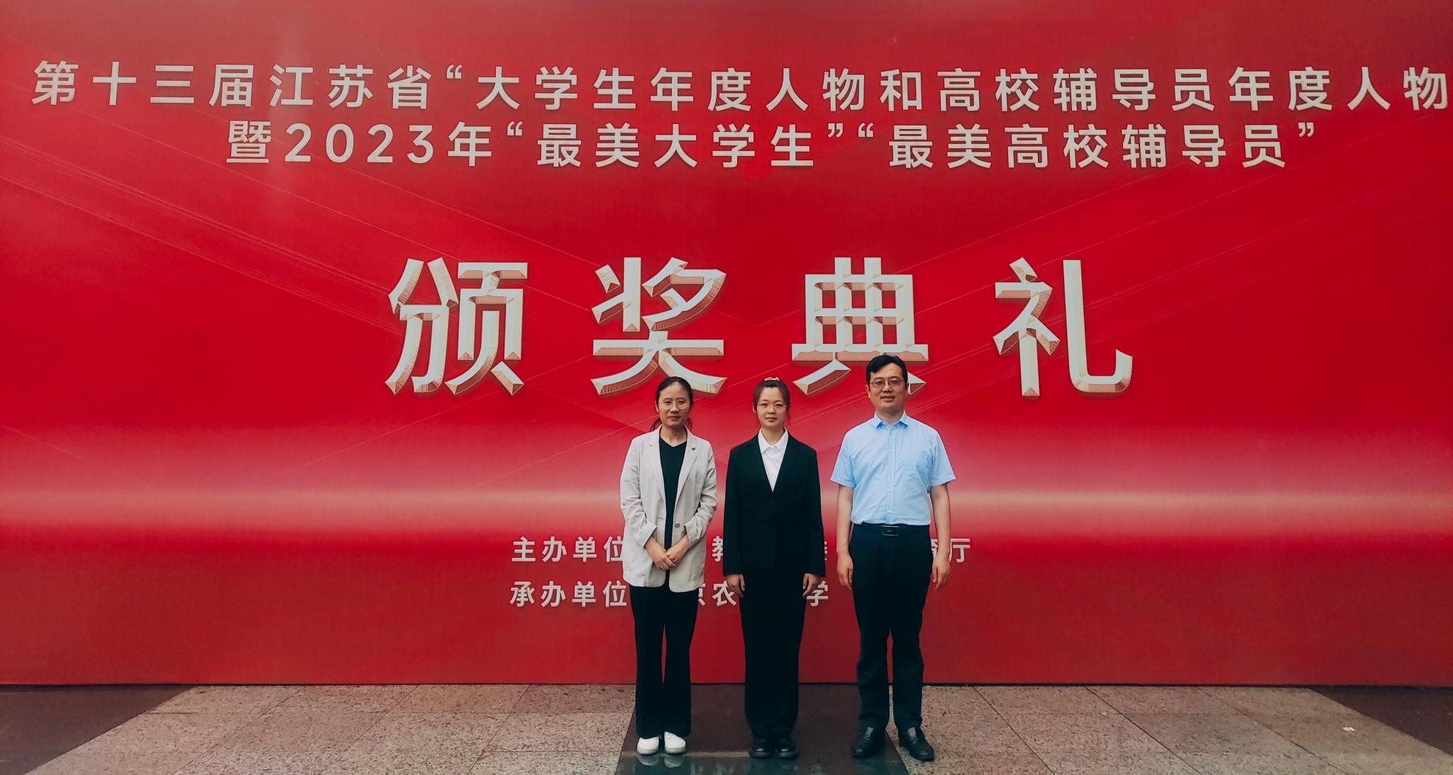 淮师新闻网6月19日电(记者 纪群 )6月18日,第十三届江苏省“大学生年度人物和高校辅导员年度人物”暨2023年“最美大学生”“最美高校辅导员”颁奖典礼在南京农业大学举行。淮阴师范学院严慧同学荣获江苏省“大学生年度人物”荣誉称号。校学生工作部负责人及师生代表参加颁奖典礼。