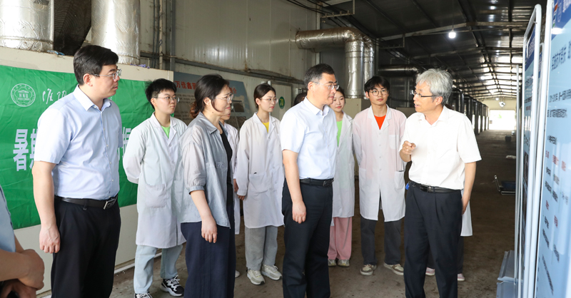 在淮阴区万佳鑫菌业科技有限公司,生科院“蕈海食用菌”社会实践团成员在王新风教授的指导下,利用团队研发的“菌丝低温促生长剂”,解决菌丝生长慢、出菇迟、优质菇率低、效益不高等产业痛点,帮助企业缩短了出菇时间,实现了经济效益的提升。尚洪波一行走访了菌菇种植大棚基地,与实践团师生亲切交谈,他希望实践团队要把专业知识和乡村实践紧密结合起来,厚植爱农情怀,练就兴农本领,在乡村振兴的大舞台上建功立业。