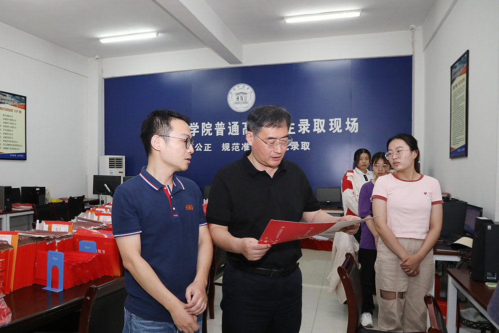 图为校党委书记尚洪波走访招生录取现场。记者 张菁菁 摄