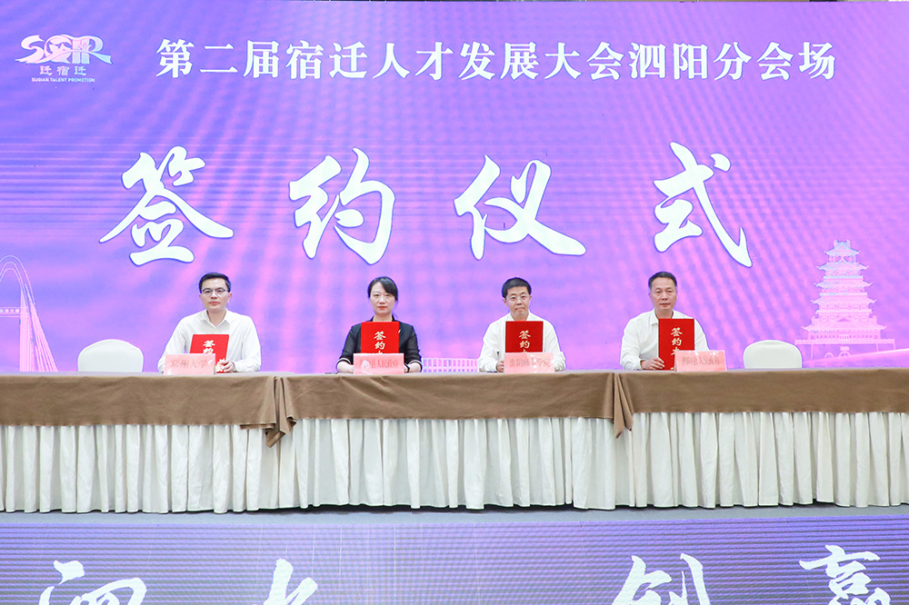 8月29日,赵祥祥参加第二届宿迁人才发展大会泗阳分会场暨“智汇泗水·创赢未来”活动。会上,赵祥祥代表学校与泗阳县人民政府签订校地合作框架协议。