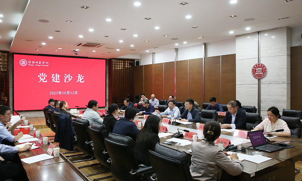 本次沙龙主题为“以‘党建+’行动深入推进党建与事业发展‘一融双高’”。商学院党委书记丁志同、文学院党委书记孙辉、物电学院党委书记刘仁明分别以《“党建+乡村振兴”的探索与实践》《打造“党建+文化” 绘就育人“同心圆”》《探索 “党建+”校企合作范式 助推产教融合高质量发展》为题作了重点交流发言。全校各二级党组织书记围绕开展“党建+”行动的路径创新、样板打造、矩阵建设等方面进行了交流研讨。